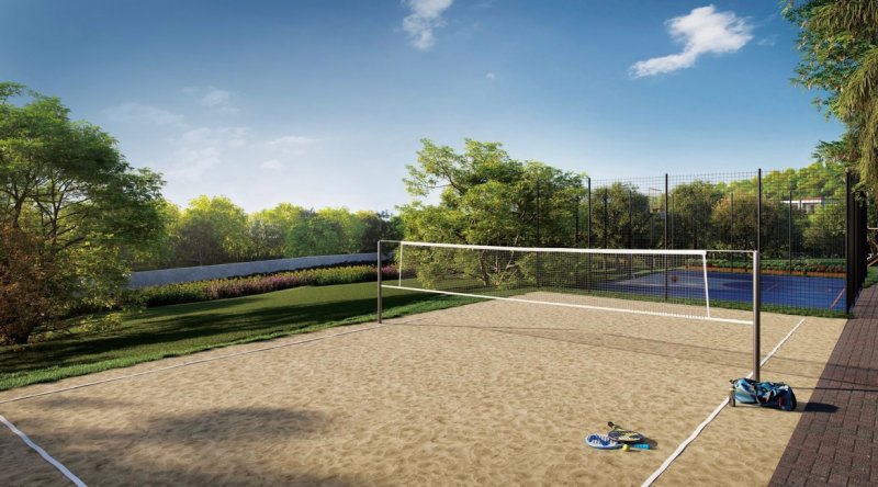 Lazer: equipado com churrasqueira, playground, forno de pizza, piscina adulto e infantil, quadra poliesportiva, quadra de areia, salão de festas, brinquedoteca, salão de jogos, e quadra de basquet.