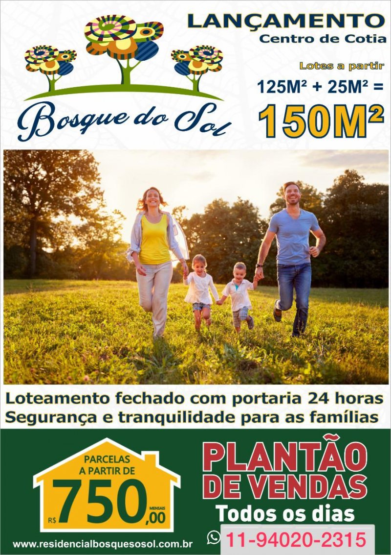 LOCALIZAÇÃO: privilegiada, acesso pela saída 32 da rod raposo tavares sentido São Paulo, 3 min do centro de cotia, abrangendo toda linha de comercio local, além de linhas de trasporte público, escolas, shoppings centers e toda linha de comercio geral-